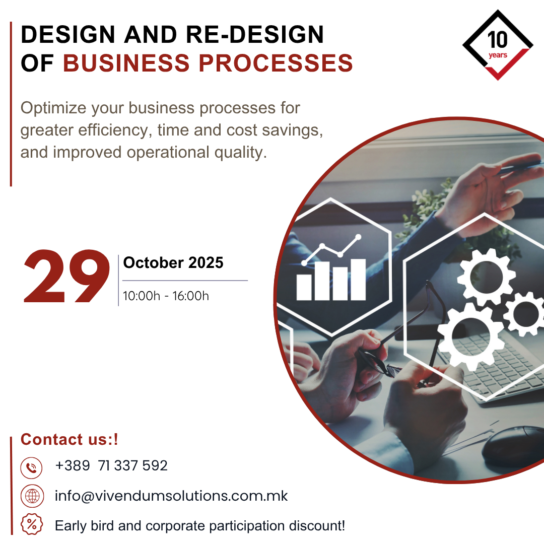 The need of modern business and changed demographics of the workforce require a change in the leadership styles. Transformational and inspirational leadership models are example of successful leadership models that guarantee company success, continuous growth and progress, innovative approaches, motivated and engaged employees, and a positive impact on society. At today’s training Vivendum Ratio Solutions presented the concept of influence through development of modern leadership skills and guidelines for implementation of programs for development of leadership skills to the participants in the Economic Chamber of Macedonia.